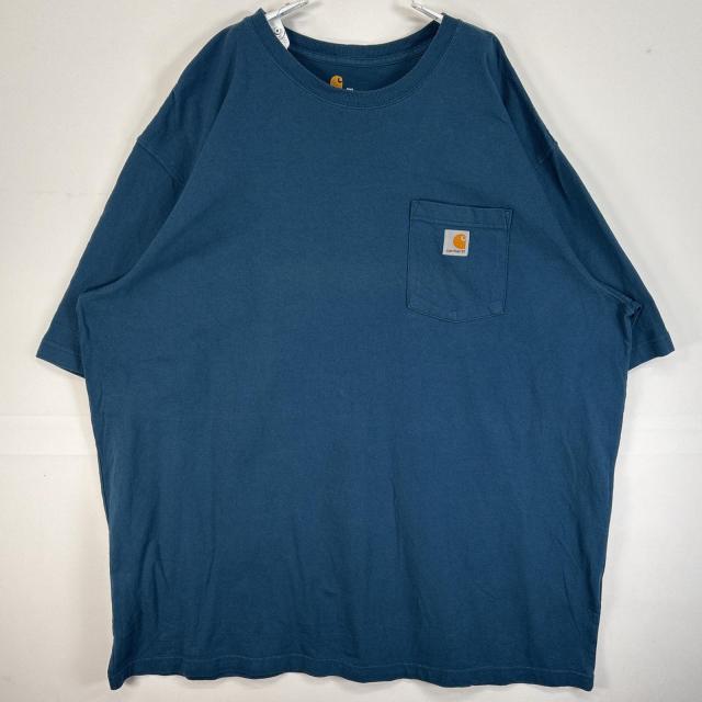 古着 カーハート Carhartt 半袖Tシャツ 大きいサイズ 肉厚 ワンポイント ロゴ 胸ポケ 2XL ブルー系 無地 メンズ