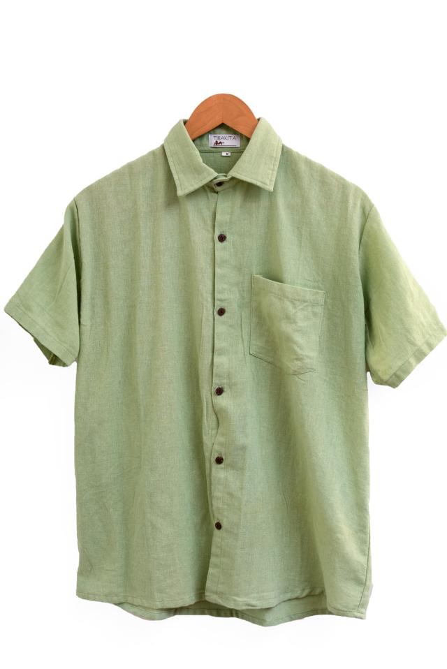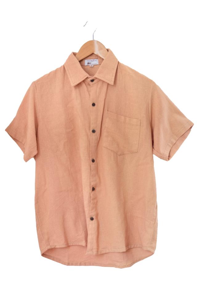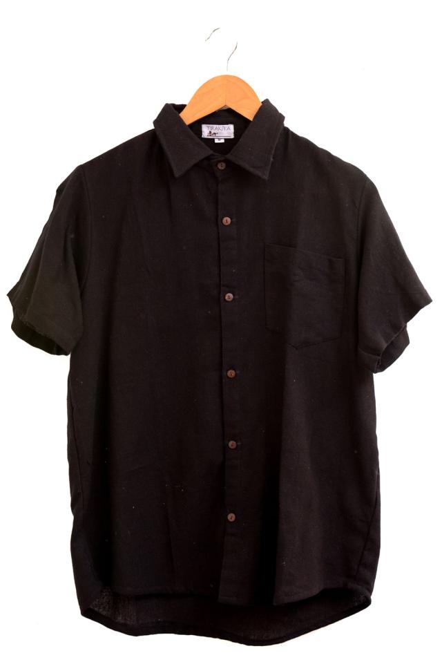 ラフコットンのシンプル半袖シャツ / コットンシャツ メンズ メンズシャツ インド TIRAKITA(ティラキタ) エスニック衣料 アジアンファッション エスニックファッション