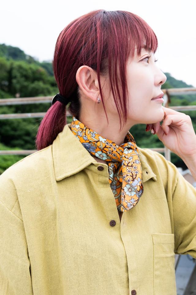 ボタンを留めてスカーフを合わせても◎