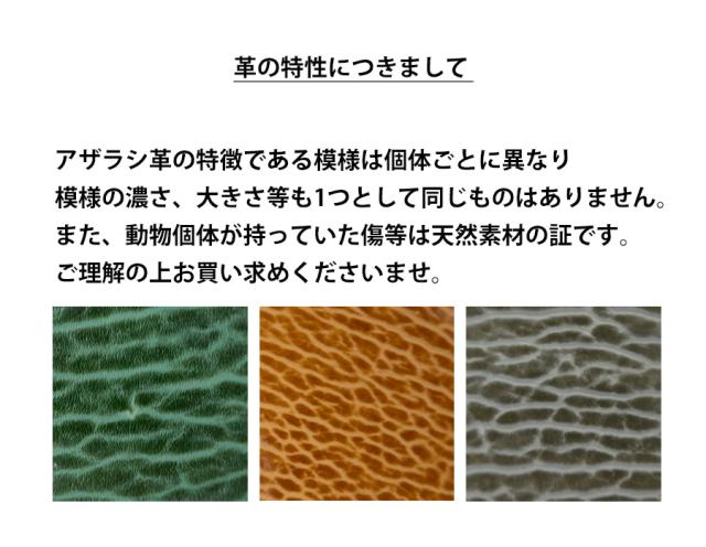 ※アザラシ革は独特の模様が特徴で個体によって模様や革特有の傷や凹凸等の出方が異なります。それらは天然素材の醍醐味となっておりますのでご了承の上お買い求めください。