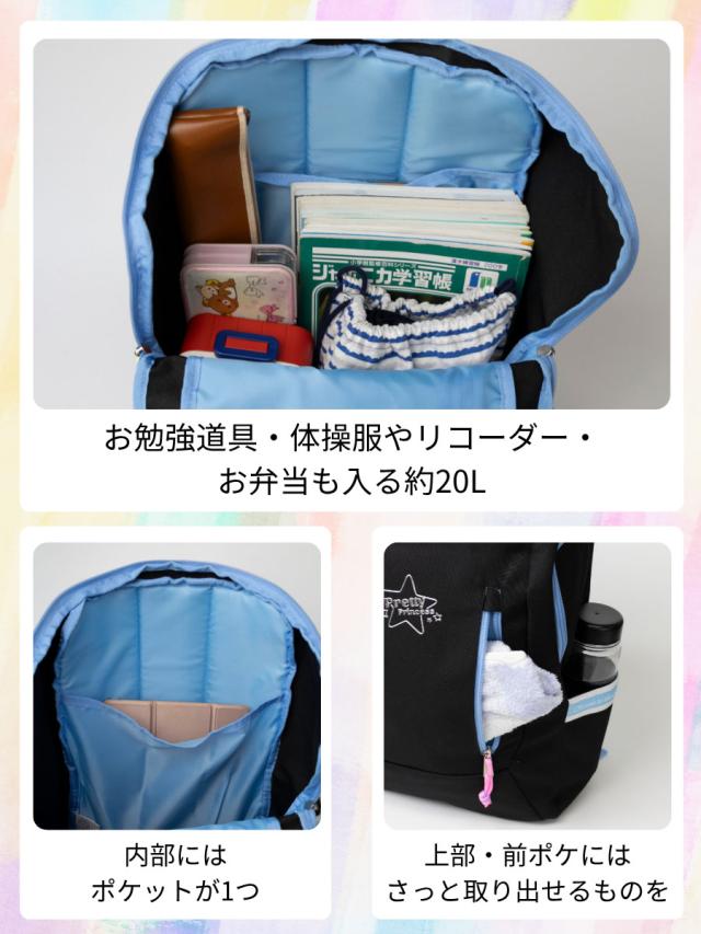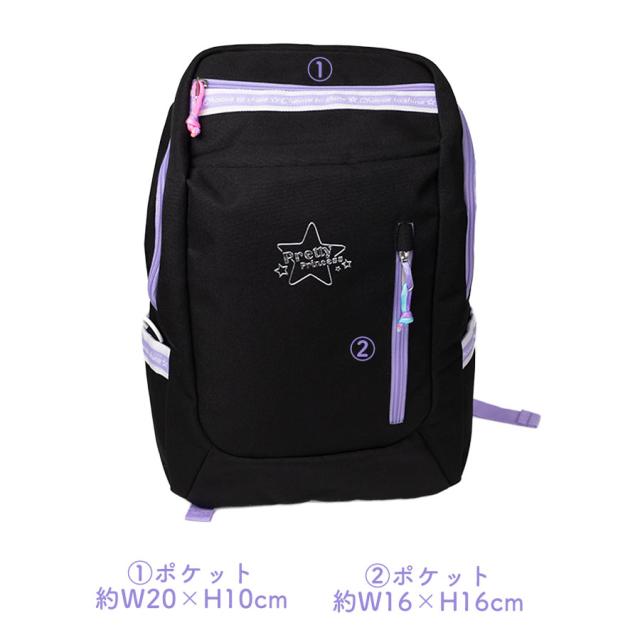 リュックサック キッズ a4 b4 20l スクエア 女の子 ブランド 小学生 大きく開く 通学リュック 通学 塾通い 遠足 黒 ブラック レインボー かわいい おしゃれ Pretty Princess プリティプリンセス スクエアリュックサック PP10