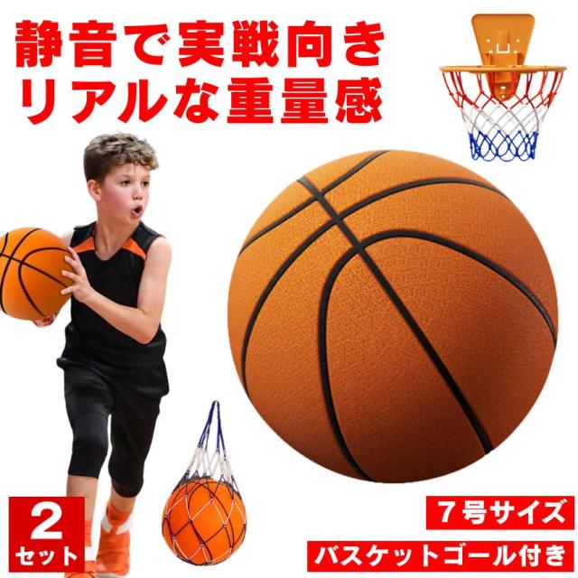 2個セット サイレントバスケットボール バスケットゴール バスケットボール 加重 サイレントボール 7号 バスケ ボール 室内 バスケットボールケース バスケットゴールネット 屋外 リング バックボード 子供 壁掛け 静音 かご サッカー 玉 球 静か ボール遊び