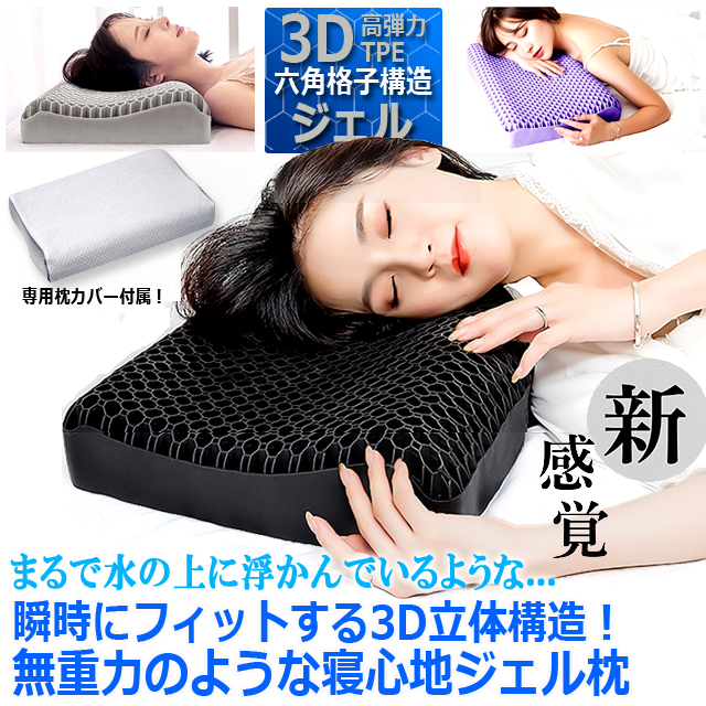 瞬時にフィットする3D立体構造!無重力のような寝心地ジェル枕 TPE 体圧分散 通気性 六角格子構造 快眠 回復 寝返り 頸椎 ストレートネック