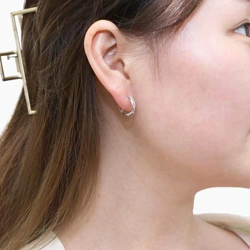 シンプルなフープタイプのピアスはキャッチいらずのシャダン式。