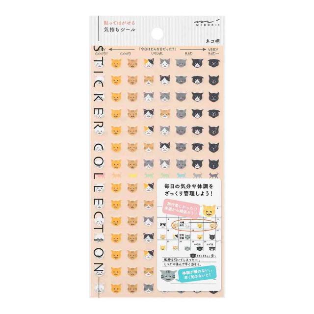 毎日の気分や体調が一覧できるネコ柄の手帳シールです。