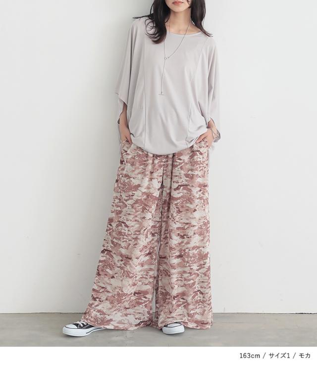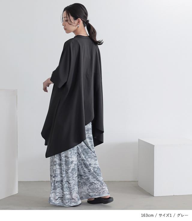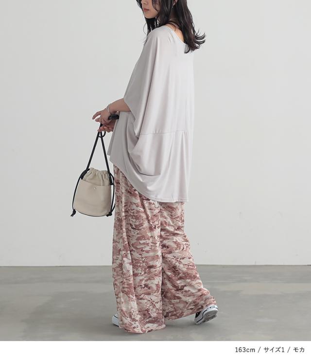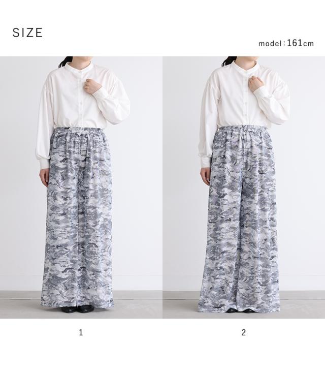 | staff:C/158cm B87 W70.5 H92.5 【普段着用】 Tops: M Bottoms: M | 【1】 着丈(ウエスト穿き):くるぶしが隠れる位 ウエスト:ゆったり ヒップ:ややゆったり 太もも周り:ややゆったり 全体:ややゆったり 程よいゆとりで綺麗なシルエットで着られました。ウエストもゴムなので楽ちんです。 【2】 着丈(ウエスト穿き):かかとから3cm余る位 ウエスト:ゆったり ヒップ:ゆったり 太もも周り:ゆったり 全体:ゆったり ゆったり着られましたが、丈が少し長いので厚底かヒールがおすすめです。 私の場合は、1を選びます。 |