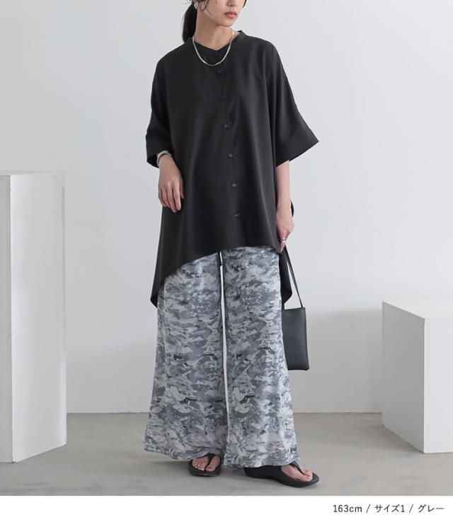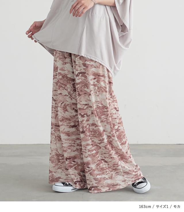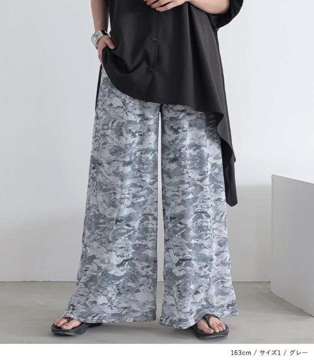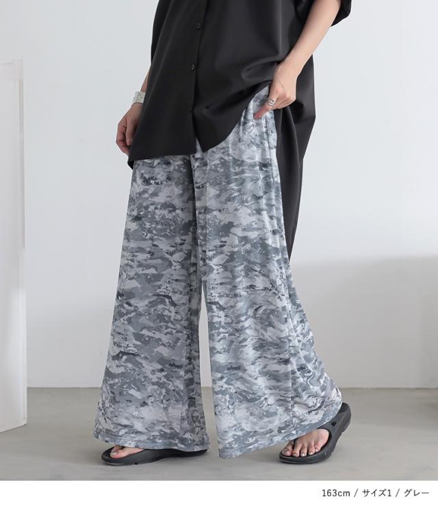 23日最大1200円クーポン 『ニュアンス柄メッシュレイヤードパンツ』※メール便可※【10】[パンツ レディース ボトムス ワイドパンツ ロング丈 メッシュパンツ 総柄 レイヤード ウエストゴム 裏地付き ポケット 春 夏]
