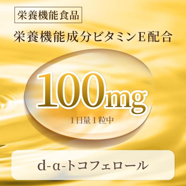 | 栄養成分表示 | (1日分1粒中) エネルギー1.42kcal、たんぱく質0.025g、脂質0.091g、炭水化物0.12g、食塩相当量0.0002g、ビタミンE100mg |