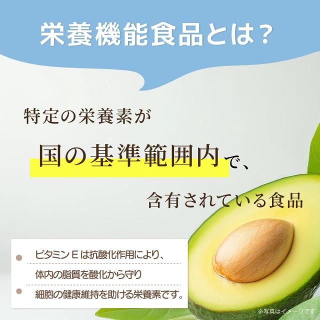 | 栄養機能食品(ビタミンE) | ビタミンEは、抗酸化作用により、体内の脂質を酸化から守り、細胞の健康維持を助ける栄養素です。 |