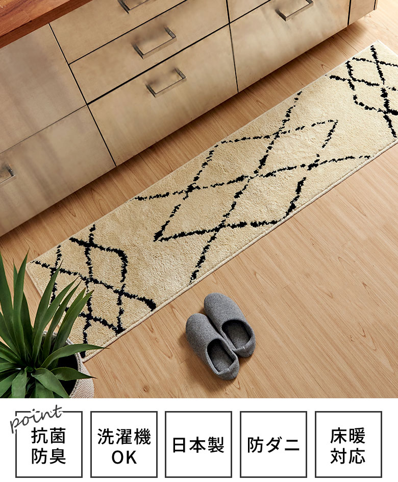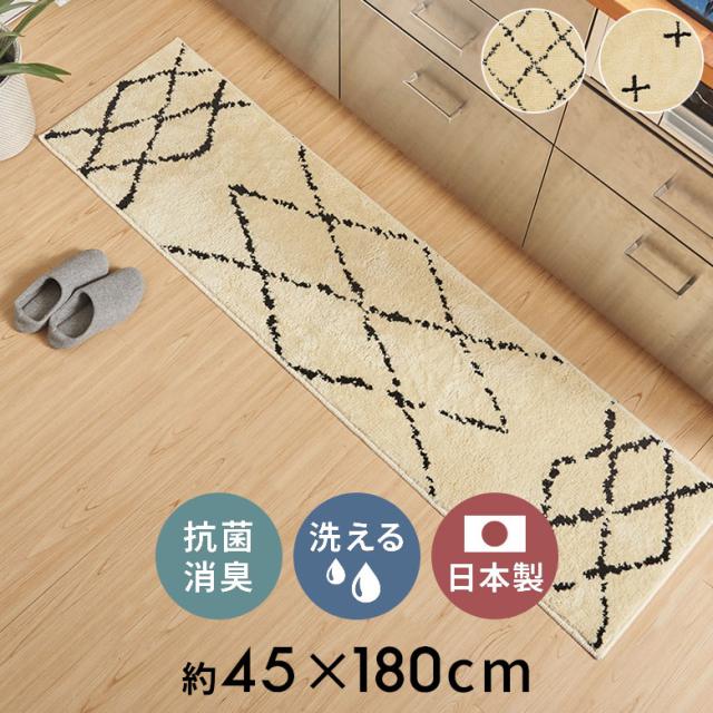 日本製 ラグ キッチン マット 約 45×180cm 国産 防ダニ 抗菌 防臭 洗える ホット カーペット 床暖房 対応 可 オールシーズン ウォッシャブル 84350