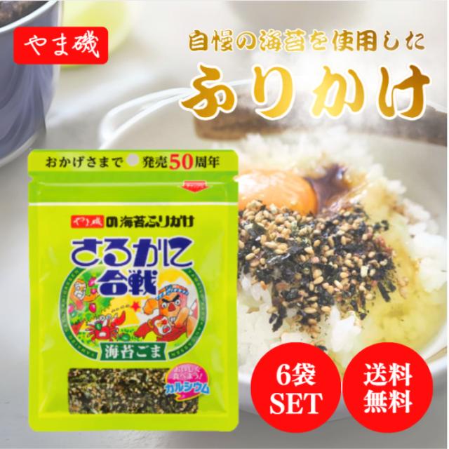 やま磯 さるかに合戦 40g 6袋セット 海苔ごま チャック付き 大袋 海苔 味付 のり 昆布 フリカケ カルシウム ごま ごはん お弁当 おにぎり 遠足 運動会