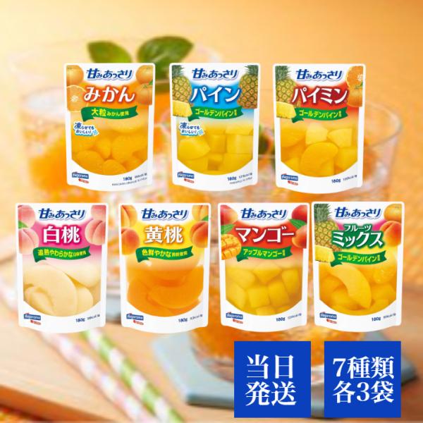はごろも 甘みあっさり 180g パウチ 7種各3個セット (フルーツミックス、パイン、パイミン、白桃、黄桃、みかん、マンゴー)簡単 お手軽 おやつ デザート