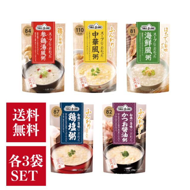 テーブルランド こだわりおかゆ 5種類各3袋 セット ( 参鶏湯風 中華風 海鮮風 かつお醤油 鶏塩 ) お粥 雑炊 お試し アソート 常温保存 非常食 保存食