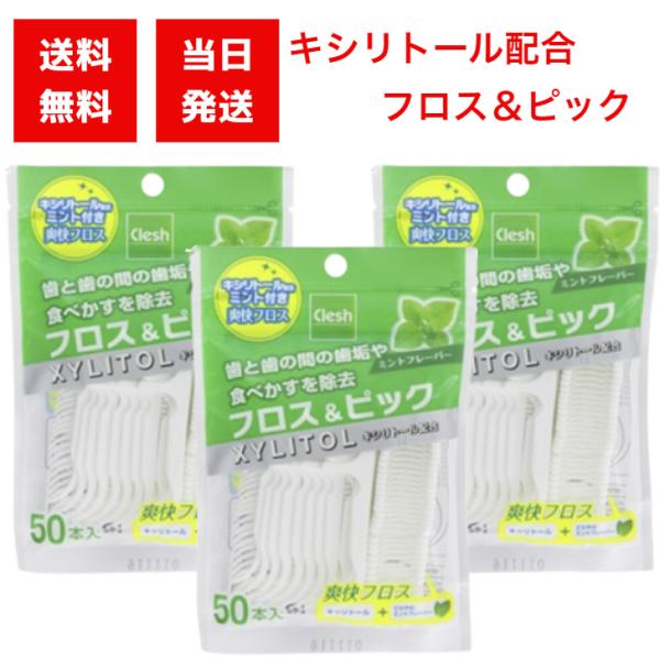 キシリトール 配合 爽快 フロス ピック ( 50本入り ) 3袋セット 歯垢 歯 歯間 オーラルケア デンタルケア 口腔ケア 食べかす ミント フレーバー