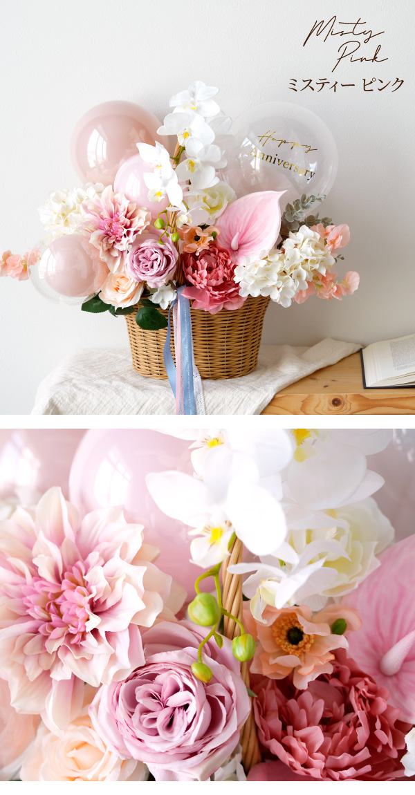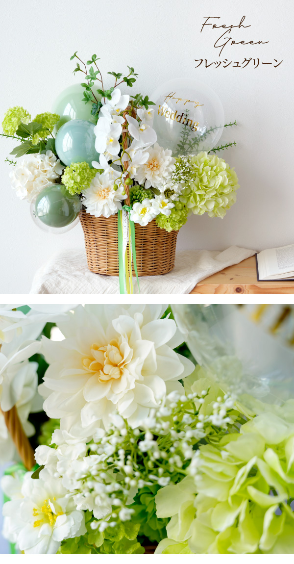 | セット内容 | ・アーティフィシャルフラワー ・透明バルーン ・ラバーバルーン ・リボン ・おもり ・かご |