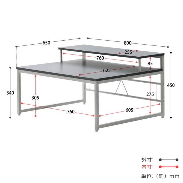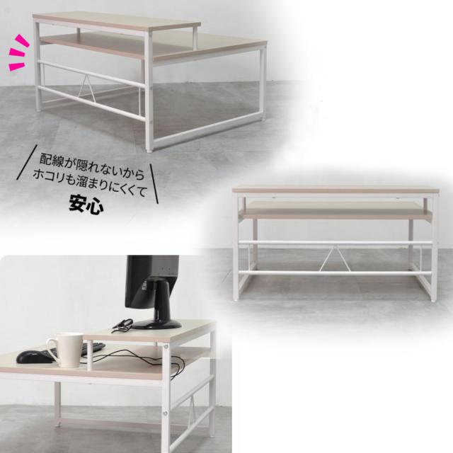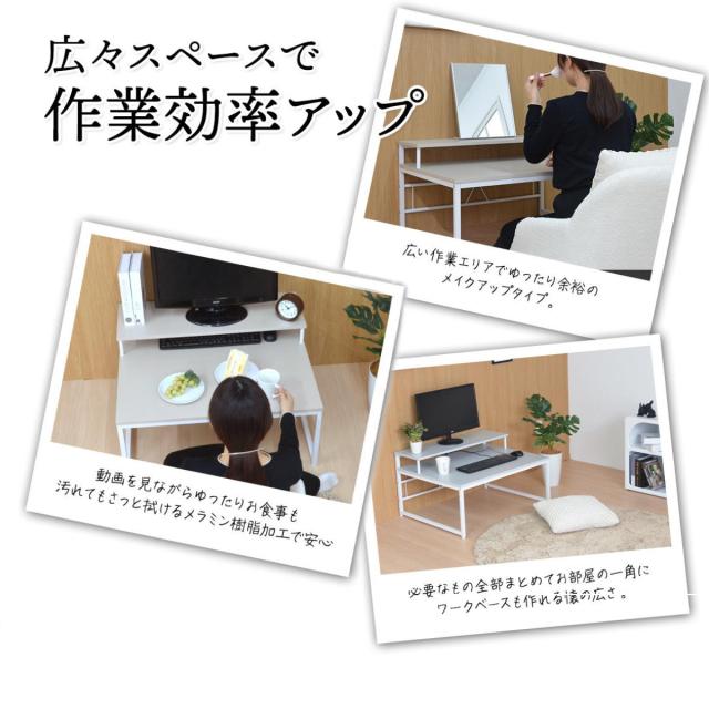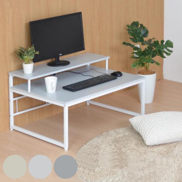 ワークデスク ロータイプ 高さ45cm パソコンデスク Noko ( デスク 机 ローデスク パソコン 奥行65 広い モニター台 デスクワーク 棚 台 2段 テーブル 作業台 おしゃれ 仕事 在宅 勉強 リビング学習 リビングテーブル 食事 メイク )