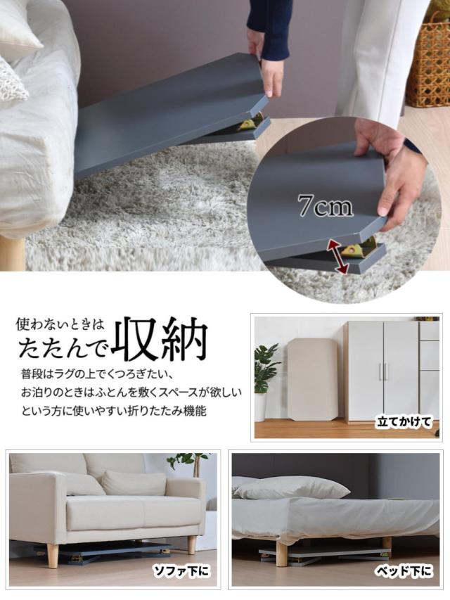 折りたたんだ収納幅は約7cmなので、ベッド下やソファ下、クローゼットの隙間にコンパクトに収納できます。ちょっと立て掛けることも可能です。