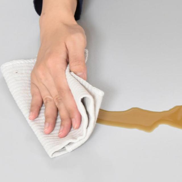 水濡れや汚れに強く、飲み物がこぼれてもサッと拭くだけで大丈夫です。熱いコップを置いても変色しにくいです。