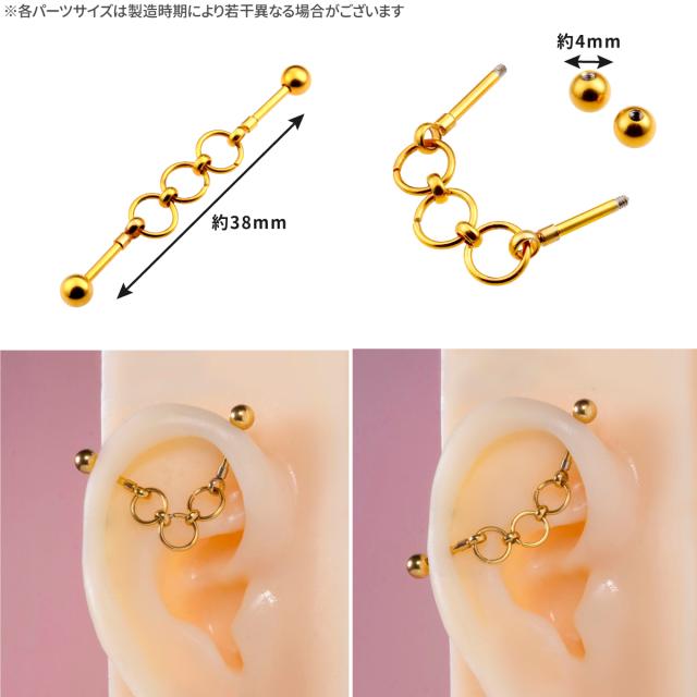 チェーン インダストリアル 16G サージカルステンレス ゴールド ヘリックス 軟骨ピアス ボディピアス ストレートバーベル