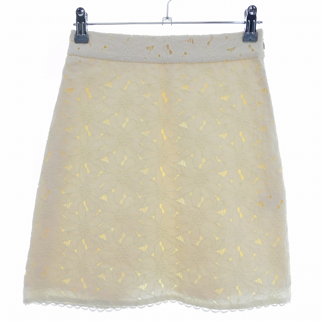 【中古】アクアガール オン ザ ストリート 台形スカート ミニ カットワーク スカラップ レース 花柄 36 白 レディース
