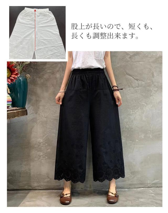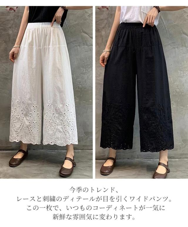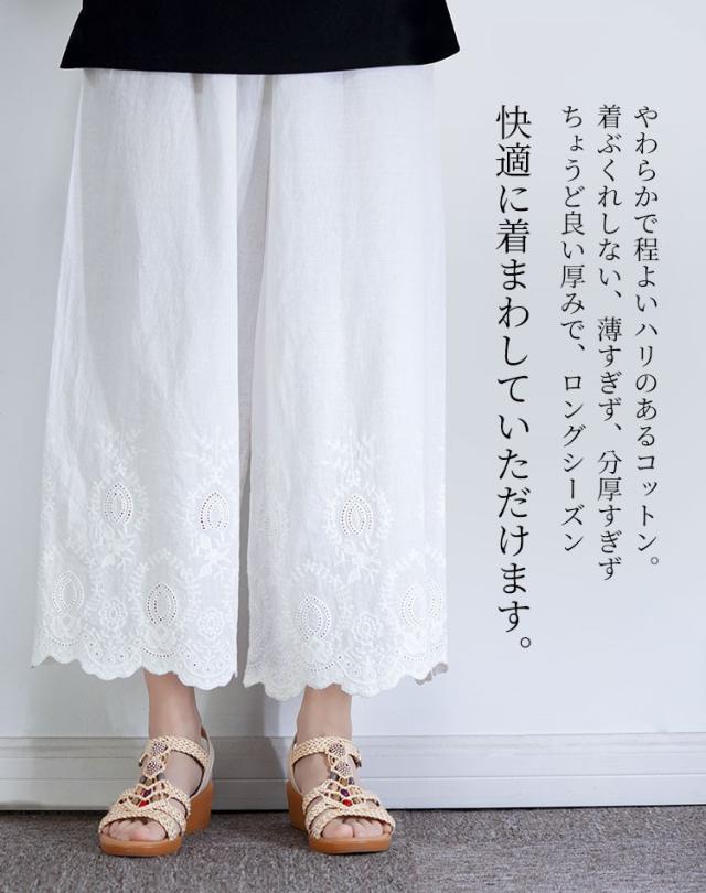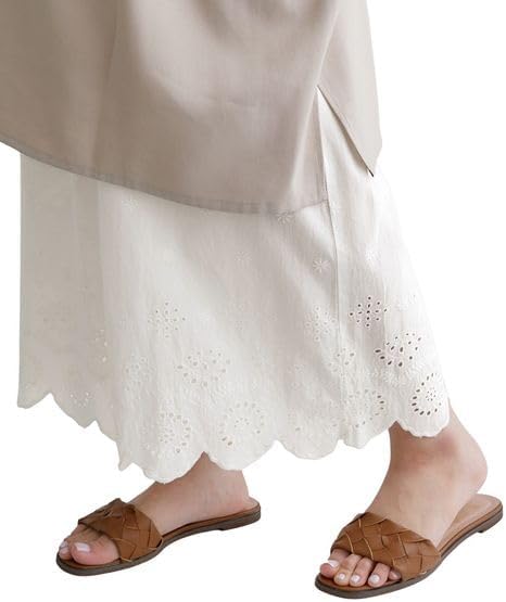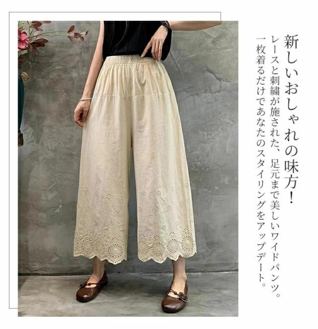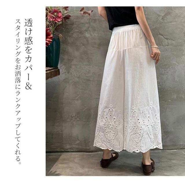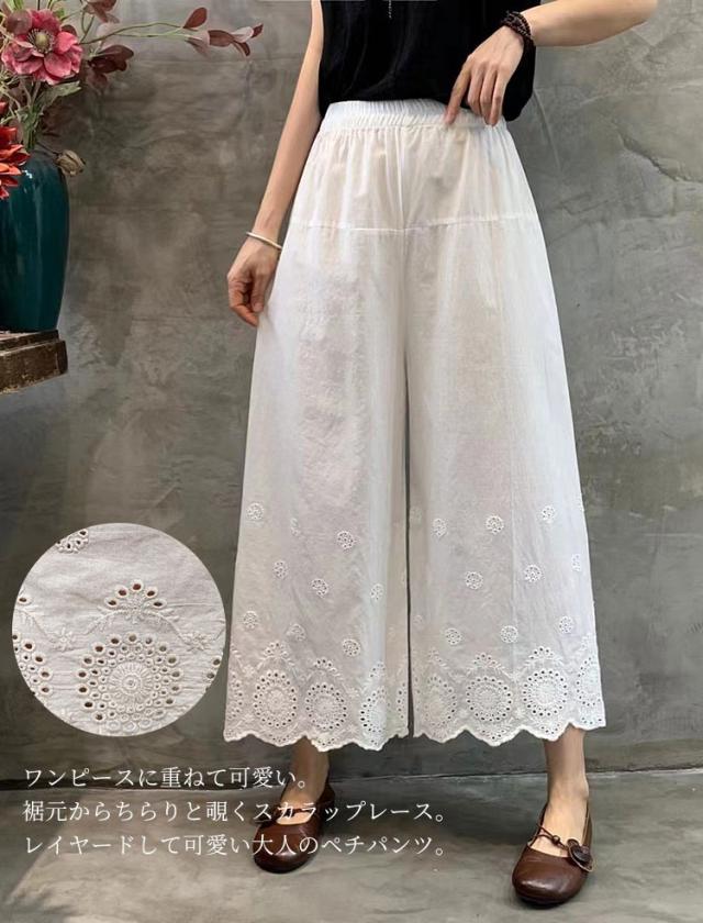 ペチパンツ レース ペチコート パンツ ロング 裾レース 春夏秋 九分丈 マキシ ボトムス ワイド 下着 レディース ペチパンツ 重ね着 レイヤード かわいい ナチュラル シンプル 綿 コットン 大人 森ガール ゆったり カットワーク