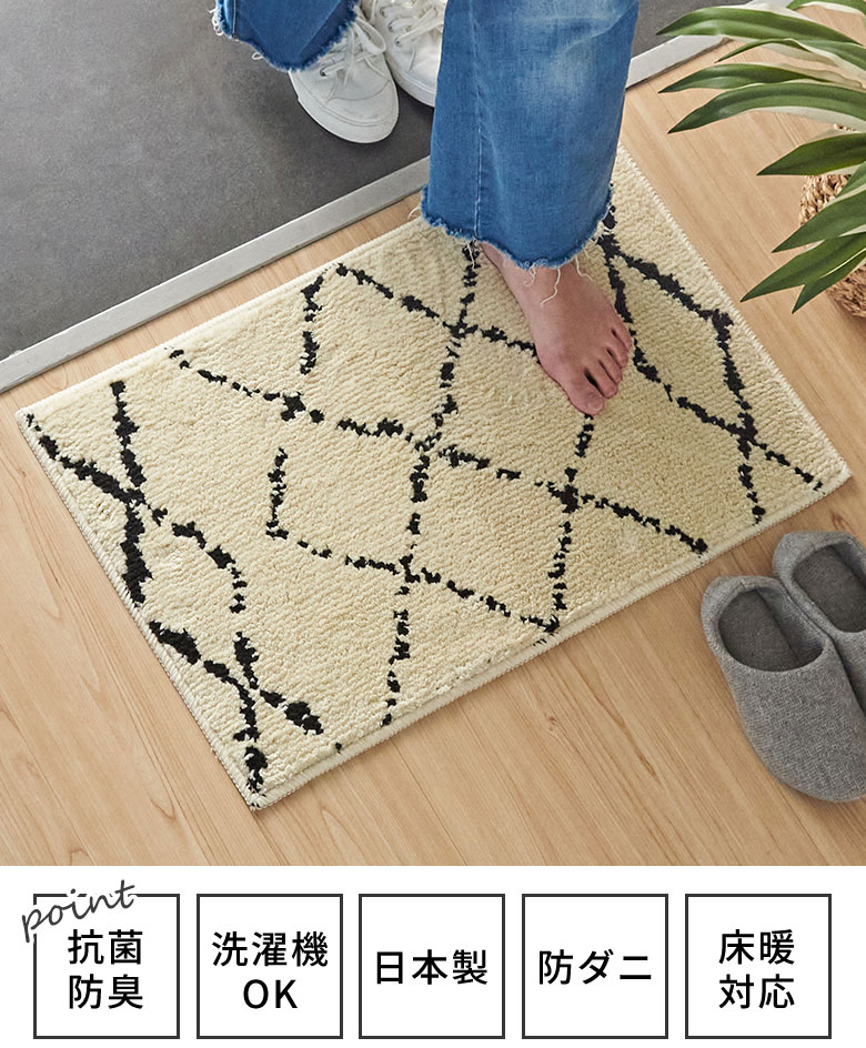 日本製 ラグ 玄関 マット 室内 約 45×70cm 国産 防ダニ 抗菌 防臭 洗える ホット カーペット 床暖房 対応 可 オールシーズン ウォッシャブル 84349