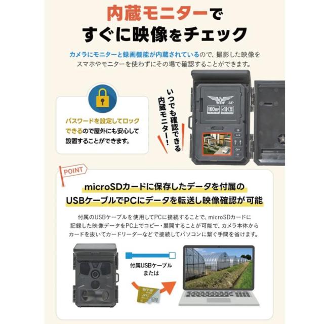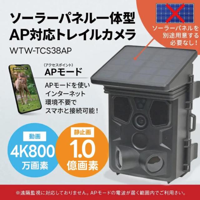 防犯カメラ トレイルカメラ ソーラー 塚本無線 800万画素 4K 超高画質 屋外 防水 乾電池 SDカード録画 監視カメラ WTW-TCS38AP 相性確認済microSDカードセット