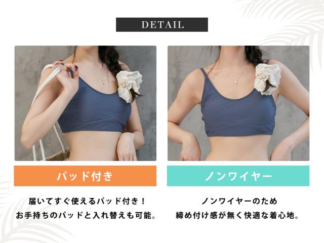 ●素材:ブラ: 82% ポリエステル, 18% ポリウレタン; ショーツ: 95% ポリエステル, 5% ポリウレタン
