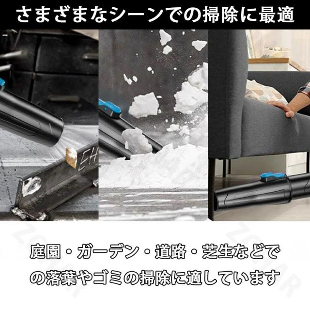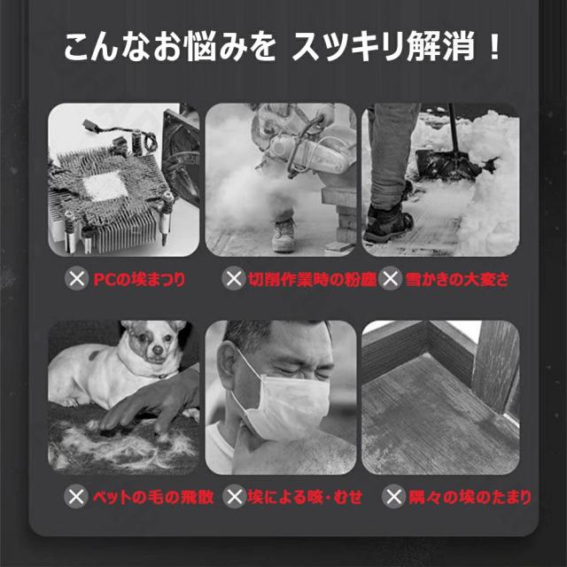 このブロワー エアダスターは、洗車の拭き上げ、車内のゴミやホコリ飛ばし、除雪、キーボードの掃除、庭の掃除、マットのゴミの除去、扇風機代わり、ペットの入浴後の乾燥、炭火起こしなどさまざまなお掃除の場面で幅広く活躍できます。他のタイプのブロワーのように組み立てる必要はなく、電池を取り付けるだけで使用できます。