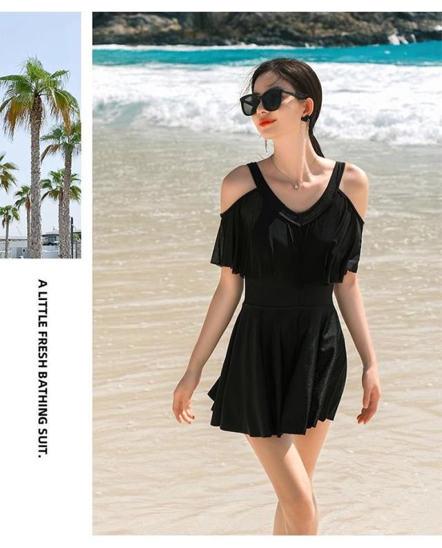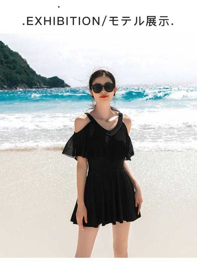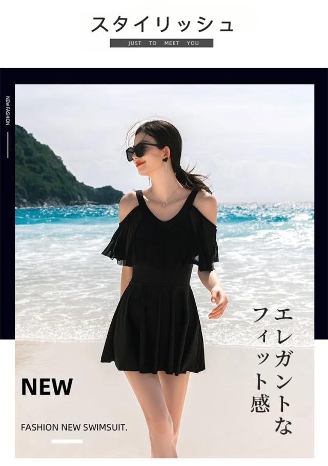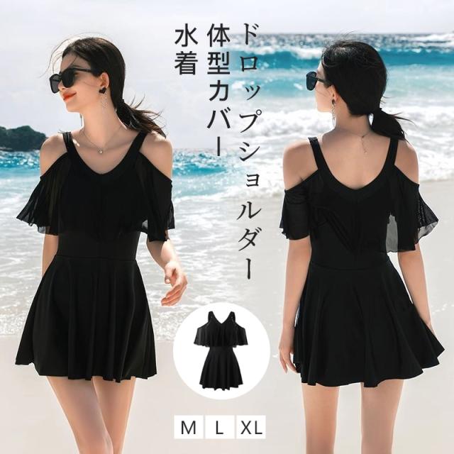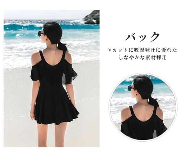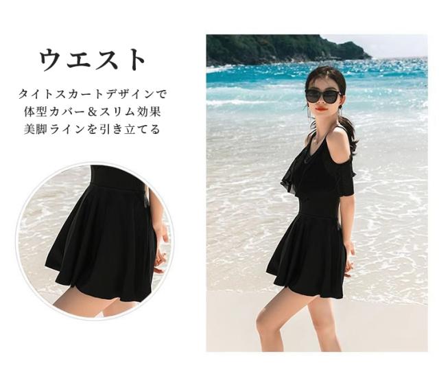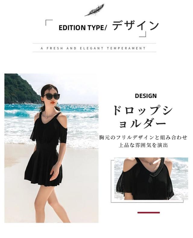 【体型カバー ロップショルダー】水着 ワンピース レディース オールインワンド 大きいサイズ フリル お洒落 ぽっちゃり エレガント 露出控えめ 細見え 女性