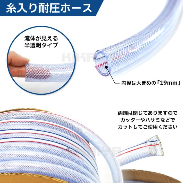 ガーデンホース 糸入り 半透明 クリア 耐圧 ホース 29.5m 内径19mm 送水ホース 散水ホース KIKAIYA