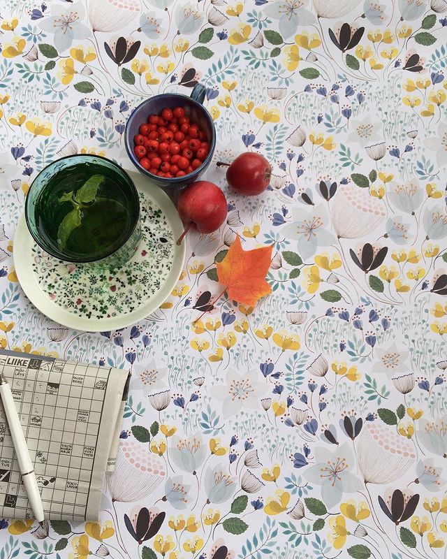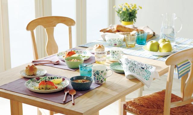 彼女の愛らしく深みのあるデザイン画をテーブルウェアに彩りました。