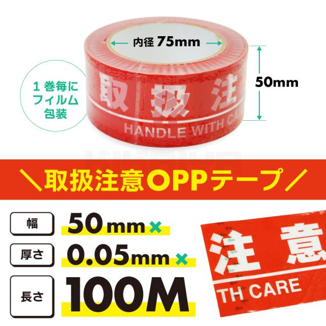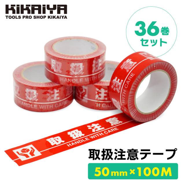 取扱注意テープ 50mm×100M 36巻セット OPPテープ 0.05mm厚 荷札テープ ビニールテープ 耐水性 耐湿性 業務用 KIKAIYA