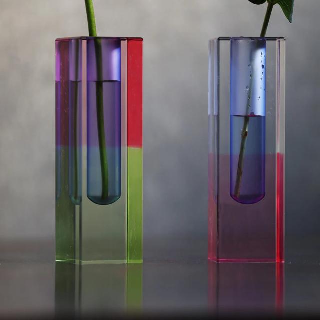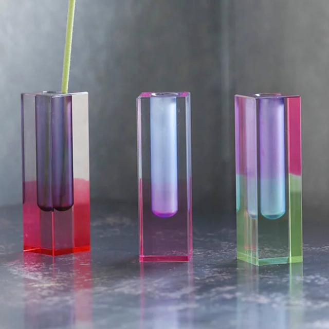繊細に施された美しいグラデーションが特徴の一輪挿しです。置かれた空間に一瞬でアートのような雰囲気をもたらします。デスク、リビング、窓辺、どこに置いてもその存在感が際立ち、空間そのものをワンランクアップさせる魅力を秘めています。