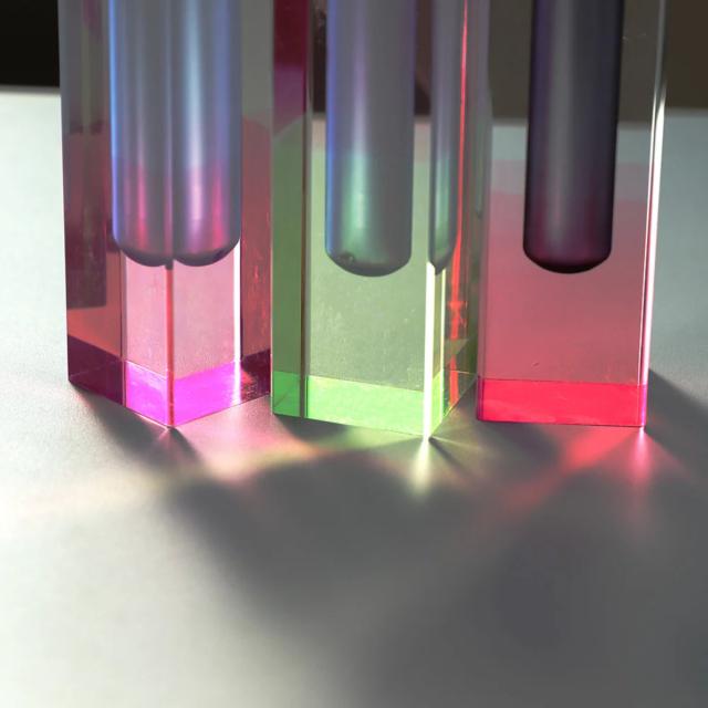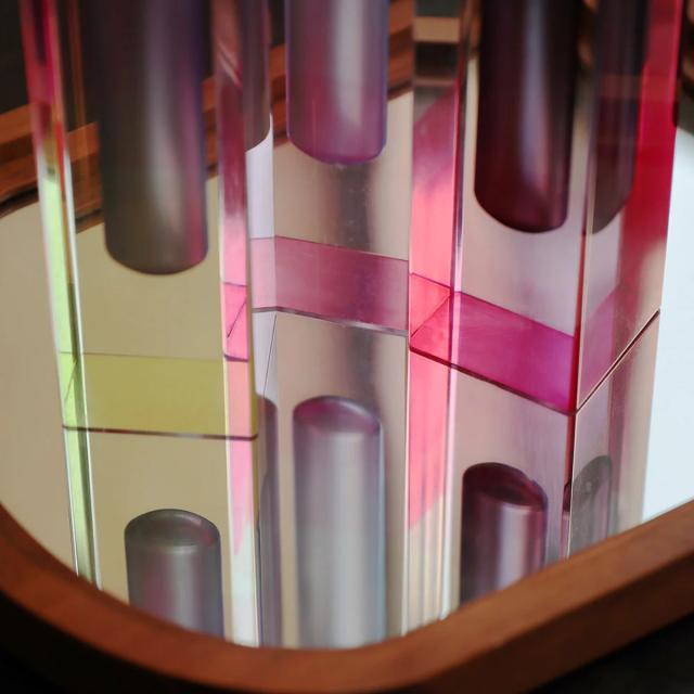 光を柔らかく取り込み、まるで空間の中で色と光が溶け合うかのような独特の存在感を放ちます。時間や場所、光の角度によって移ろう表情は、日常の風景を特別なものへと変えてくれます。