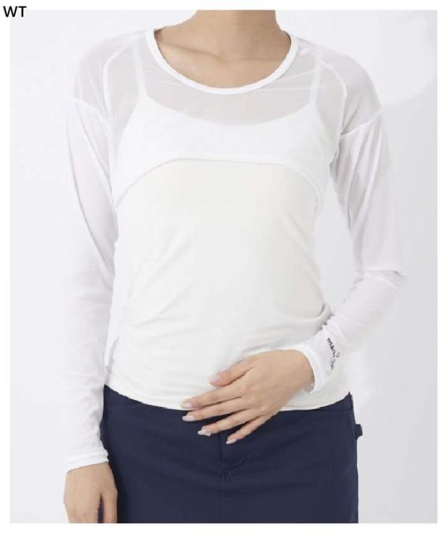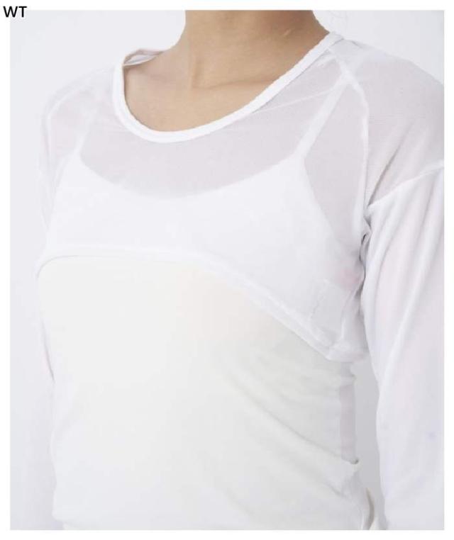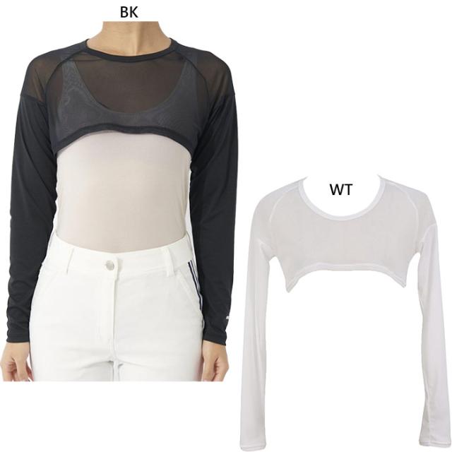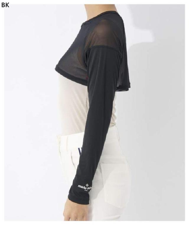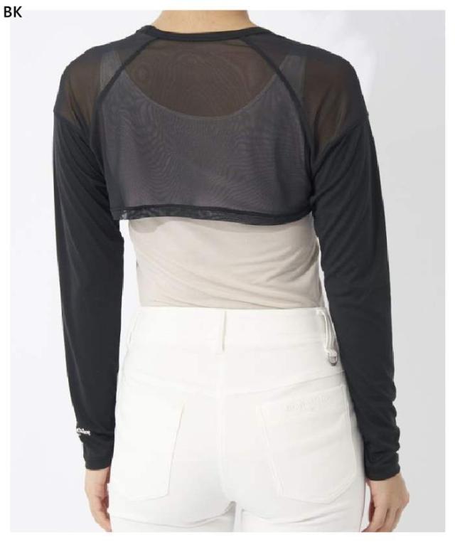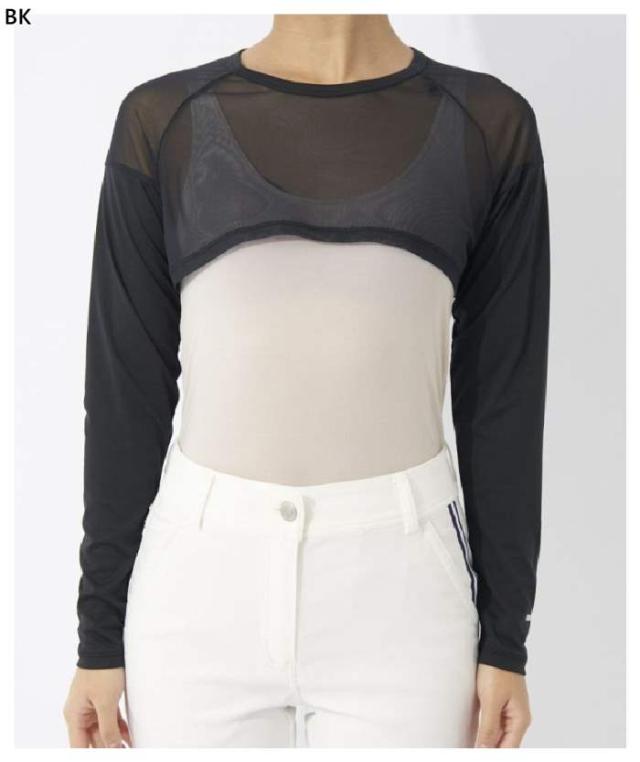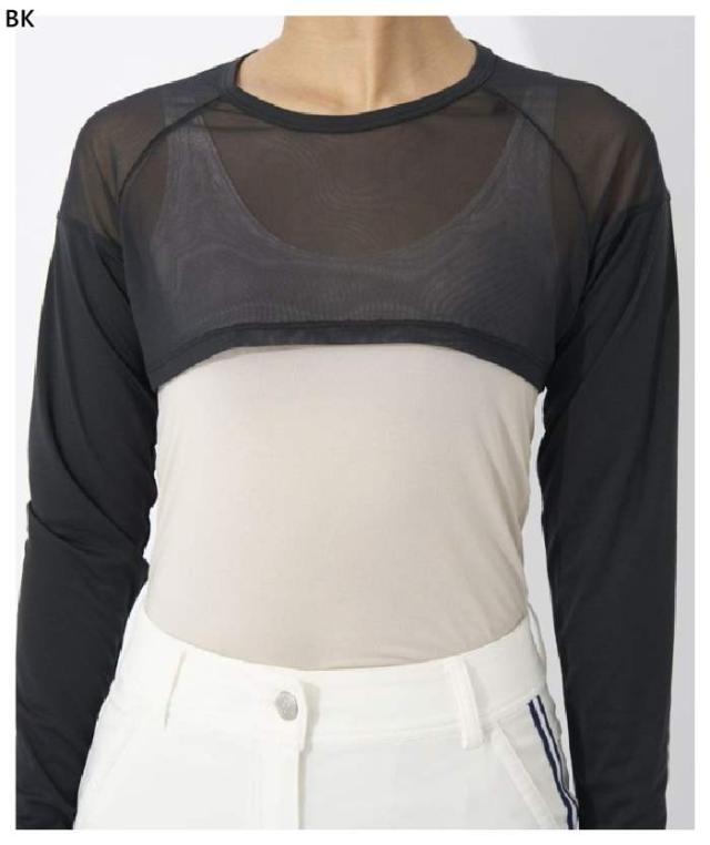 UV対策できるメッシュ切り替えの丸首アンダーシャツのボレロ丈タイプです。