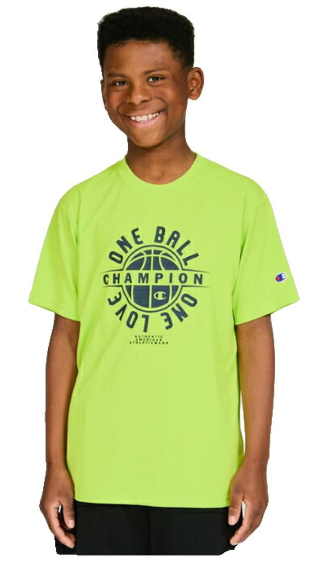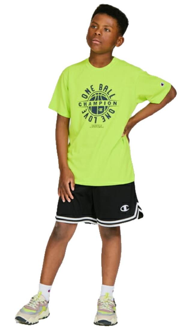 環境に配慮されたリサイクルポリエステル100%で、吸汗速乾機能、通気性などの機能を備えた素材に、汗によるニオイの発生をアクティブに抑制し続ける抗菌防臭機能「C ODORLESS® by Polygiene」加工を行った生地を使用したジュニアショートスリーブTシャツです。胸にはバスケットボール、「CHAMPION(チャンピオン)」、「ONE BALL ONE LOVE(ワンボール ワンラブ)」と「AUTHENTIC AMERICAN ATHLETICWEAR(オーセンティック アメリカン アスレチックウェア)」を組み合わせたグラフィックを、背中裾には「CHAMPION BASKETBALL(チャンピオン バスケットボール)」をラバープリントで入れています。コーディネートしやすいカラーイメージのショーツ(CK-ZB524、CK-CB525)も展開しているので、セットアップでの着用もオススメです。