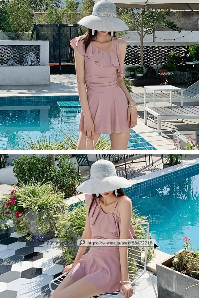 水着 ワンピース バックリボン レディース 体型カバー リボン ワンピース水着 オシャレ 大きいサイズ タンキニ 風 大人 フレア フレアスカート 太もも隠れる ウエストギャザー シンプル 可愛い 体型カバー水着 スイムウェア 秋冬 バレンタイン