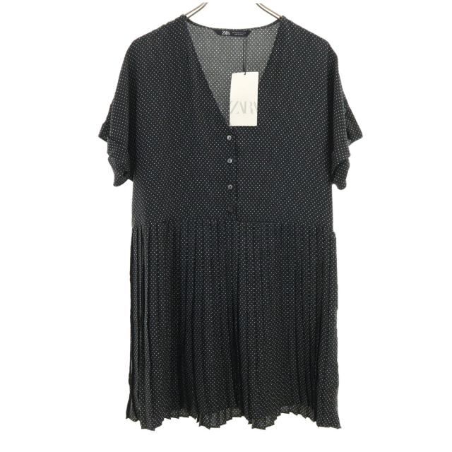 未使用 ZARA ザラ ドット柄 半袖 Vネック ミニワンピース M ブラック レディース