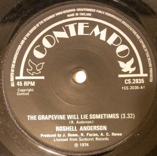 【中古】英7” Roshell Anderson The Grapevine Will Lie Sometimes / Such A Beautiful CS2035 Contempo /00080