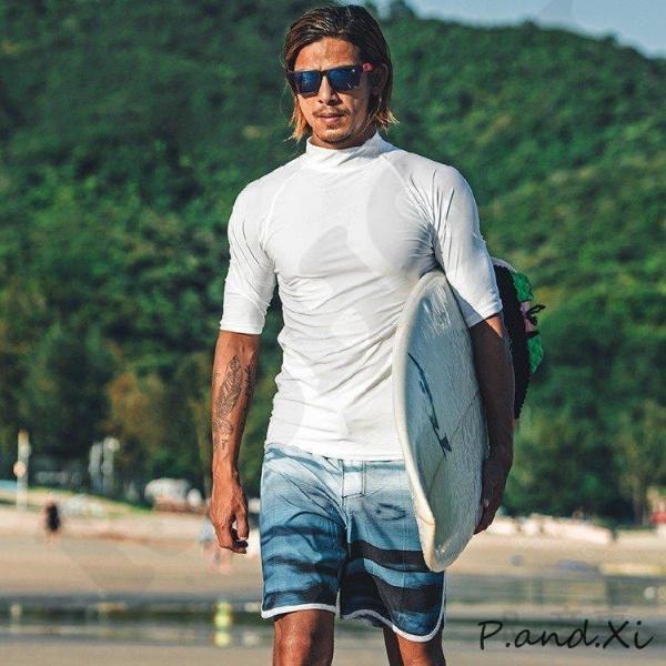 「爆買」ラッシュガード 半袖 メンズ ホワイト 水着 水陸両用 プルオーバー ハーフパンツ セットアップ アウトドア 運動 サーフィン 水泳 男性 日焼け対策
