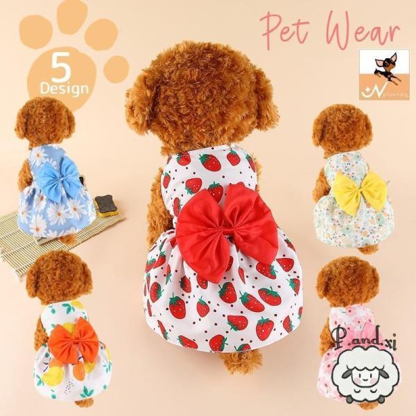 「爆買」ドッグウェア ペットウェア ワンピース ペット用 小型犬 いぬ イヌ 犬服 リボン スカート 花柄 イチゴ 袖なし 夏 かわいい キュート サイズ豊富