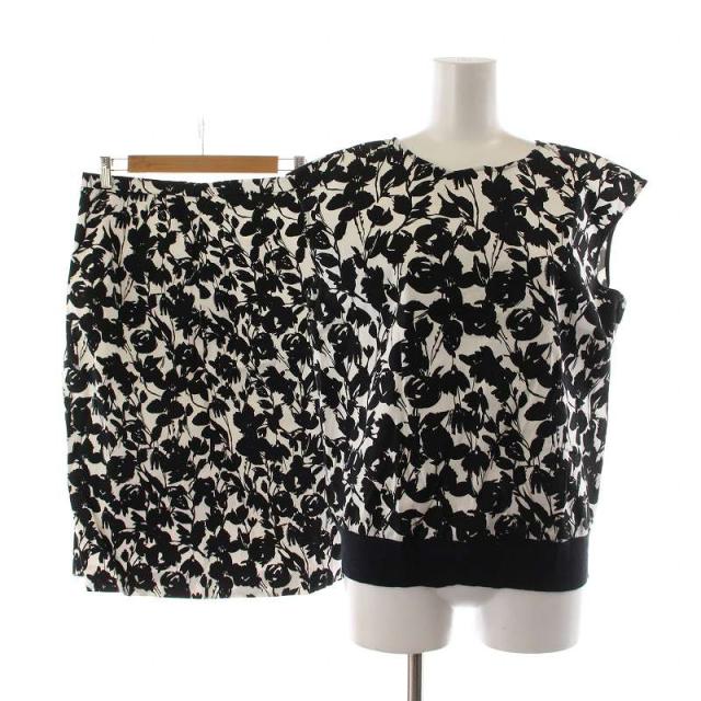 【中古】アニエスベー プレステージ セットアップ 台形スカート カットソー ノースリーブ 花柄 ひざ丈 38