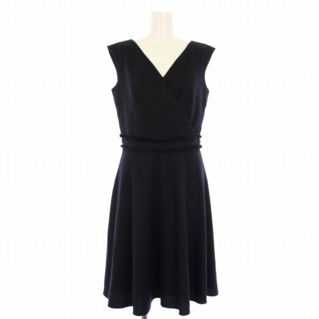 【中古】アナイ ANAYI ワンピース フリンジ ひざ丈 ノースリーブ 38 紺 101717-14-200-65 /TK レディース
