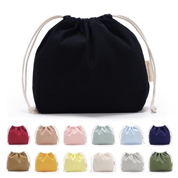 巾着袋 小 大 無地 巾着 おしゃれ かわいい 帆布 きんちゃく袋 大きい こども インナーバッグ 巾着ポーチ 巾着 (黒,M)