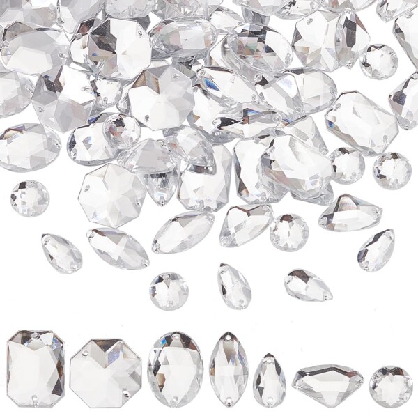 PH PandaHall 約70個 7種 ビジュー パーツ 2穴 アクリル ラインストーン 縫製フラットバック カボション デコ素材 手芸用 ジェリー用 アクセサリーパーツ装飾材料 クリア