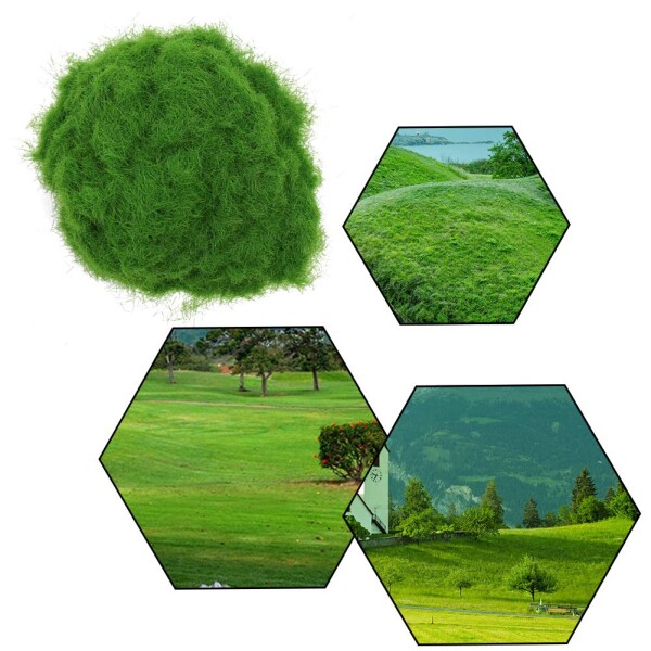色:緑 。パッケージに含まれるもの: 50g 5mm 人工芝生パウダー モデル草。