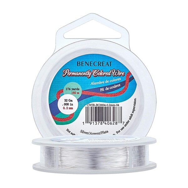 BENECREAT 全長160m線径0.2mmアクセサリーワイヤー アートワイヤー 光沢感 変色防止 ジュエリー作り ビーズクラフト 細い銅線 手芸素材(シルバー)