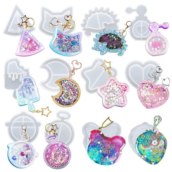 YFFSFDC シリコンモールド 流砂型 12個セット 小動物 ハート アイスクリーム シェイカーモールド ソフトモールド DIY手作り かわいい ペンダント アクセサリー 装飾 再利用可能