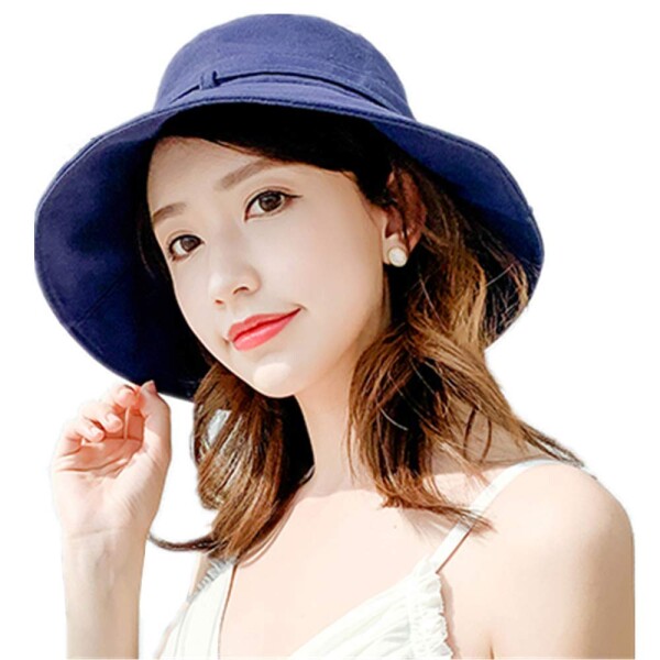 (ミト) 帽子 レディース UVカット 紫外線100%カット UV ハット 可愛い 小顔効果 日よけ 折りたたみ つば広 自転車 飛ばない 夏 春 サイドリボン (ネイビー)